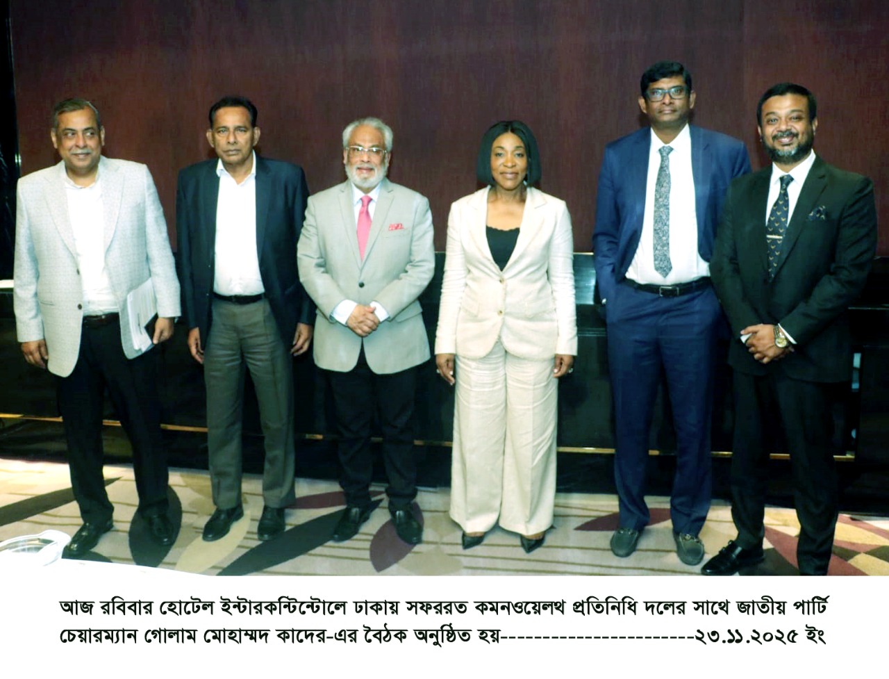 নিজস্ব প্রতিবেদকঃ আজ ২৩ নভেম্বর ২০২৫, সন্ধ্যায় হোটেল ইন্টারকন্টিনেন্টাল এ কমনওয়েলথ প্রতিনিধি দলের সাথে জাতীয় পার্টির এক বৈঠক অনুষ্ঠিত হয়। বৈঠকে জাতীয় পার্টির নেতৃত্ব দেন দলের চেয়ারম্যান জিএম কাদের এবং কমনওয়েলথ এর পক্ষে নেতৃত্ব দেন কমনওয়েলথ এর মহাসচিব শার্লি আয়োরকর বচওয়েক।