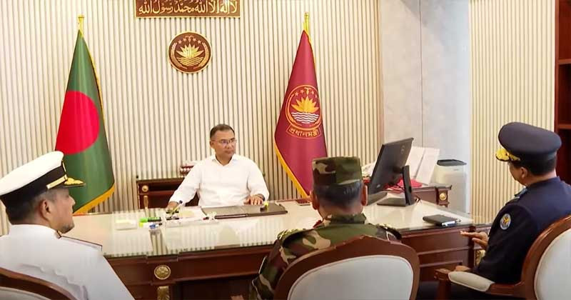 বৃহস্পতিবার সকালে প্রধানমন্ত্রীর সঙ্গে সাক্ষাৎ করেন সেনাবাহিনী প্রধান জেনারেল ওয়াকার-উজ-জামান, নৌবাহিনী প্রধান অ্যাডমিরাল মোহাম্মদ নাজমুল হাসান এবং বিমানবাহিনী প্রধান এয়ার চিফ মার্শাল হাসান মাহমুদ খাঁন।