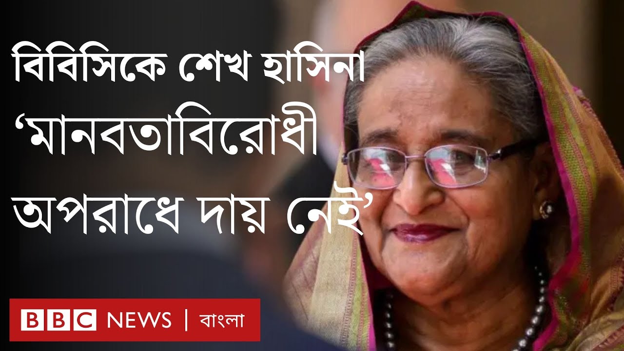 বিবিসিকে ই-মেইল দেওয়া সাক্ষাৎকারে শেখ হাসিনা বলেন, তার অনুপস্থিতিতে যে বিচার চলছে, তা ‘ক্যাঙ্গারু কোর্টের সাজানো প্রহসন’ এবং রাজনৈতিক প্রতিপক্ষের নিয়ন্ত্রণাধীন। তিনি আরও জানান, তার আইনজীবী বা আত্মপক্ষ সমর্থনের সুযোগ দেওয়া হয়নি।